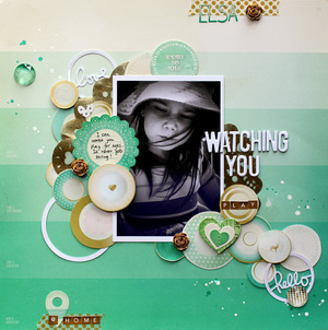 Watching You Play, the layout of the week, is bought to you by Annelie, username Annelie. She focused on this monochromatic approach using teal gre...