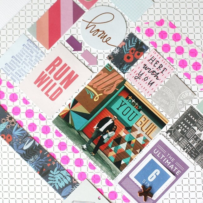 See how Jamie used June's scrapbook kit for a colorful layout!