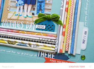 For this layout, I was asked to feature paper scraps - right up my alley, right?! I picked out papers from the kits that were softer and more muted...