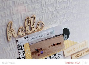 Here is the finished layout. Supply list: Walden Scrapbooking Main Kit, Baker Bridge, Concord, Large White Tag, Tiny Attacher